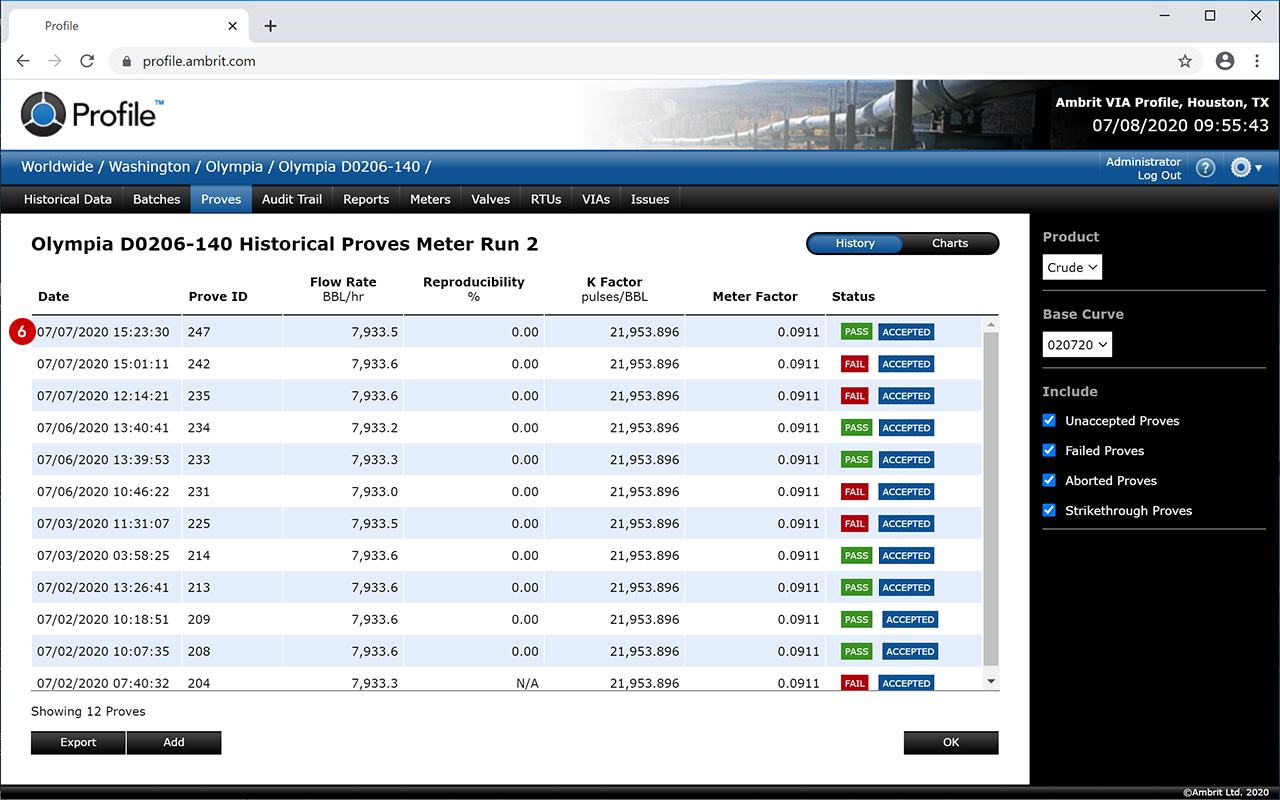 When Approve™ is activated in Profile™, the proves list can be displayed for all meters or by specific meter: