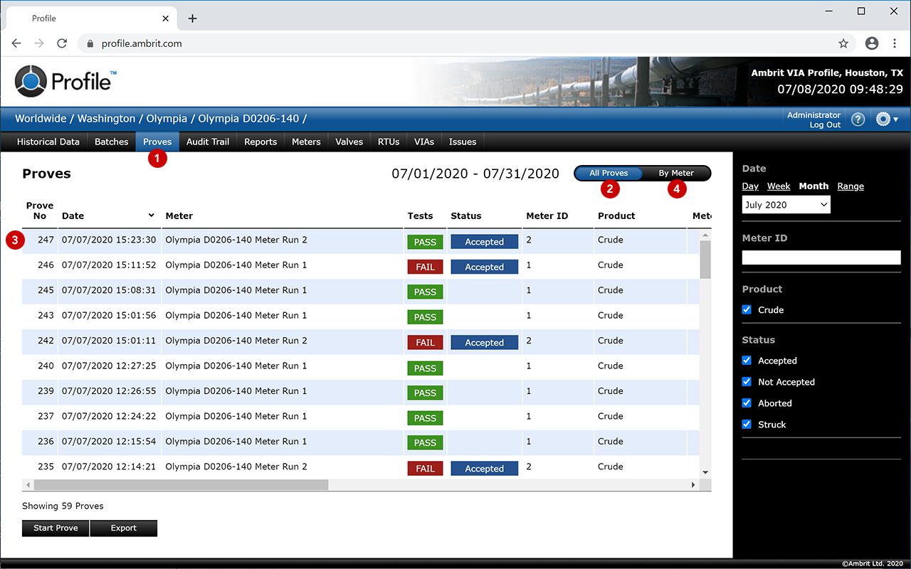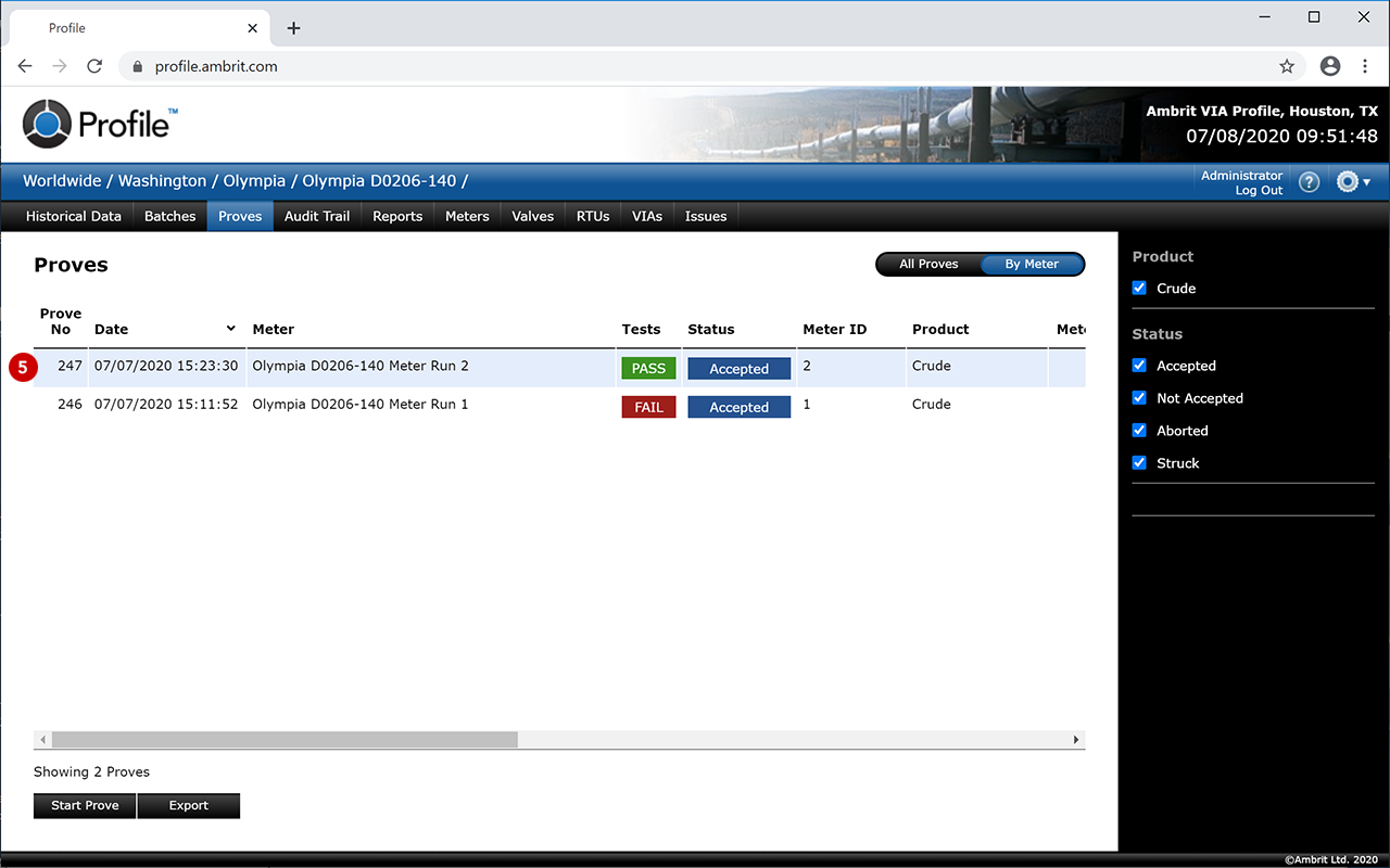 3. Click the ‘All Proves’ tab to view the complete list of all proves across all meters 2